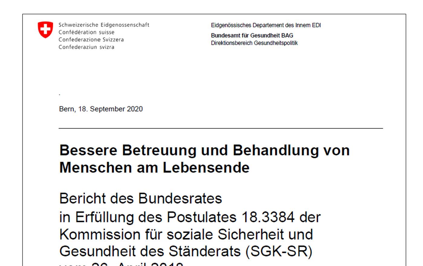 Bericht des Bundesrates "Bessere Betreuung und Behandlung von Menschen am Lebensende"