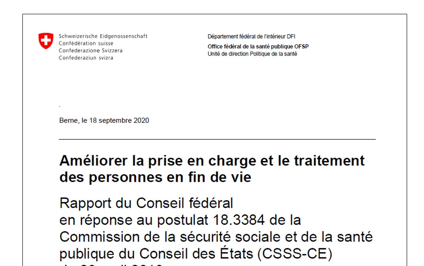 2020Rapport du Conseil fédéral "Améliorer la prise en charge et le traitement des personnes en fin de vie"